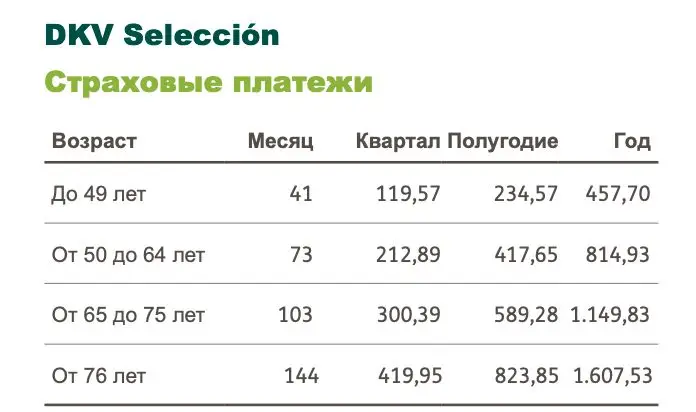 DKV Selección скомпонован с учётом требований Миграционных служб Испании и 100% подходит для подачи документов.